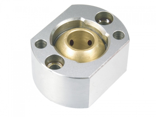 此款斜顶导向座常与斜顶底座配合使用,适用于大型模具;或使用比较长的斜顶杆跨过几组模板,在开合模时防止模板卡住斜顶杆起到护杆作用。内部铜球形导滑块具有0°-20°倾斜角度的摆动,十分容易安装,铜球上镶有石墨,可减少斜顶杆在开合模具时的磨损和卡伤,能起到干润滑作用,避免斜顶杆卡死现象。