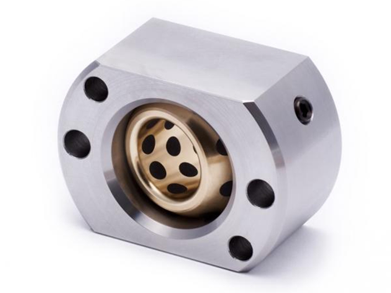 此款斜顶导向座常与斜顶底座配合使用,适用于大型模具;或使用比较长的斜顶杆跨过几组模板,在开合模时防止模板卡住斜顶杆起到护杆作用。内部铜球形导滑块具有0°-20°倾斜角度的摆动,十分容易安装,铜球上镶有石墨,可减少斜顶杆在开合模具时的磨损和卡伤,能起到干润滑作用,避免斜顶杆卡死现象。
